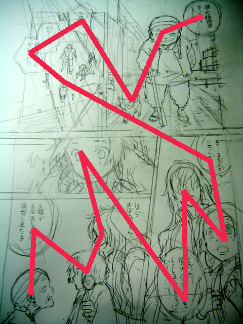 赤線が読む人の視線予想図。