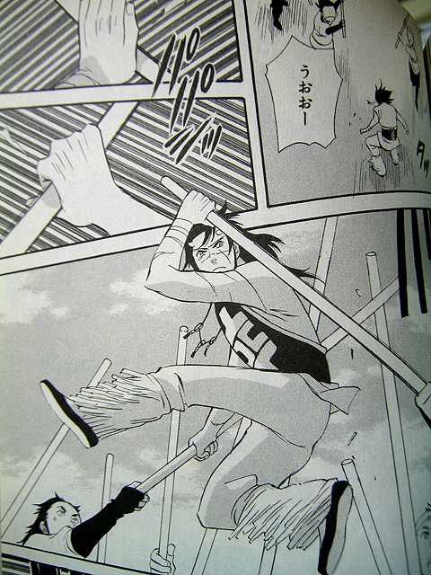 細かいコマが続くアクションの中に、集中線のない大ゴマが入ると