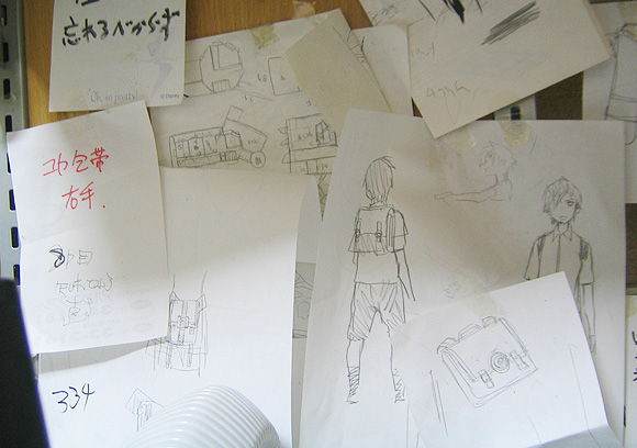 正面には服のデザインなどの設定画が貼ってあります。