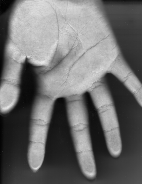 私の髪と右手をスキャナで取り込んで